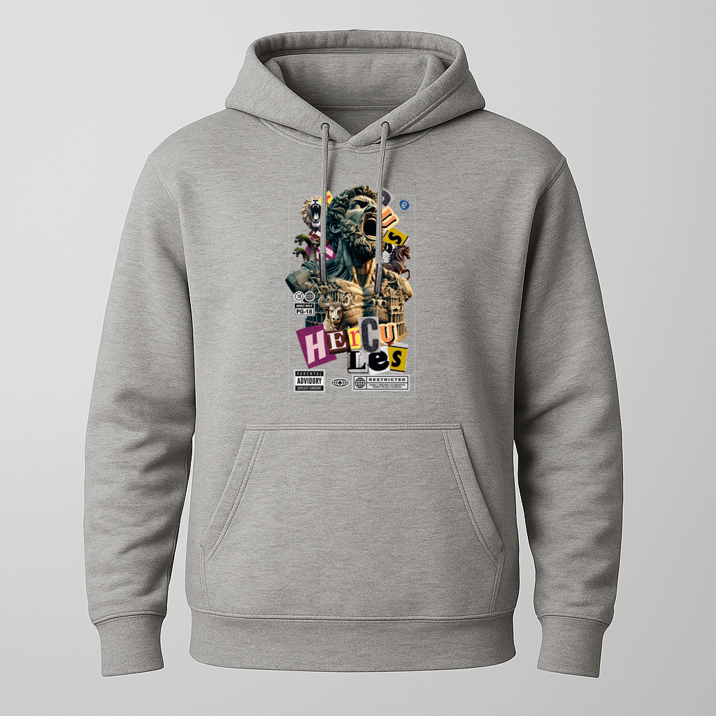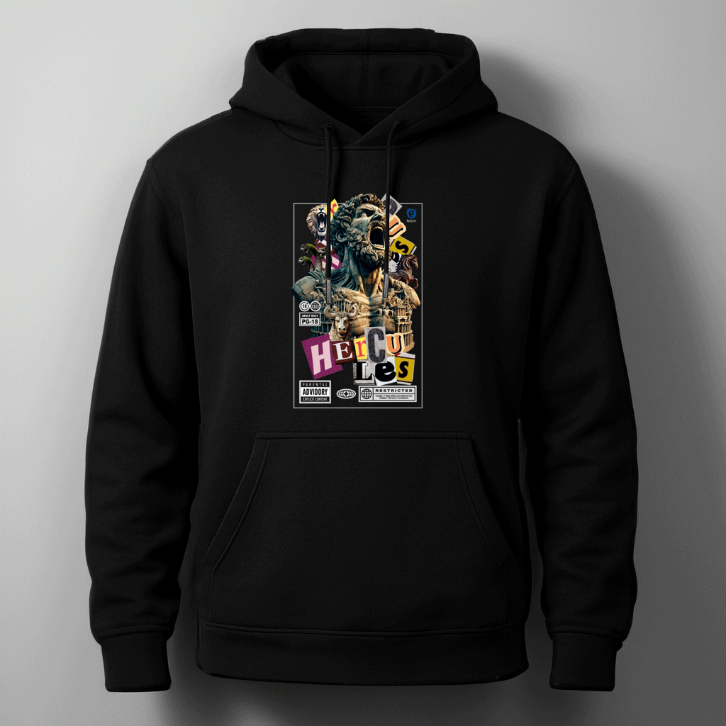 Collage style με layers από μύθο, σύγχρονο culture & warning labels