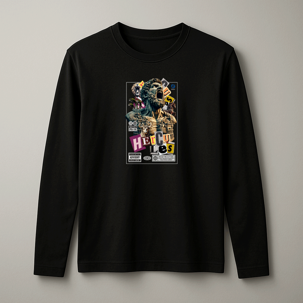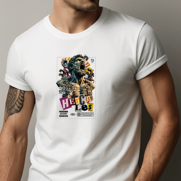 Collage style με layers από μύθο, σύγχρονο culture & warning labels